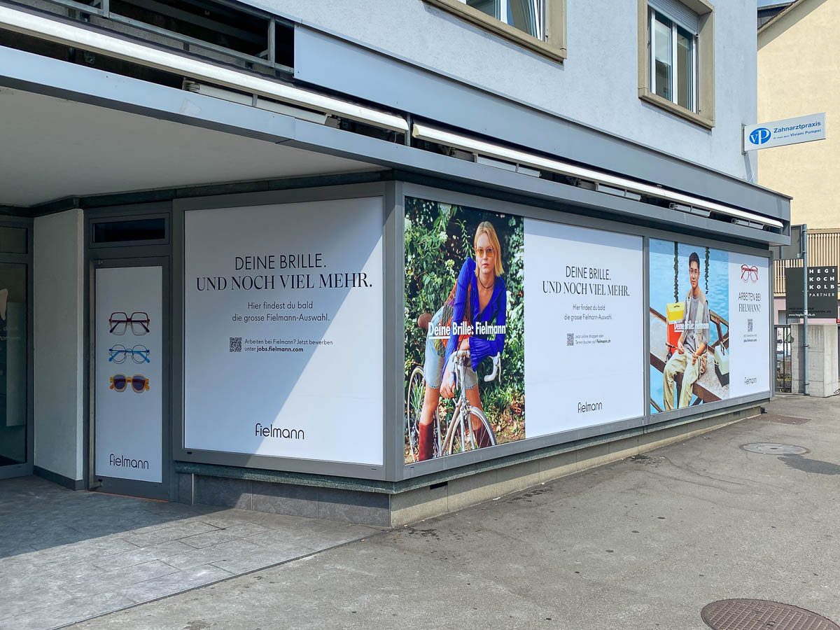 Die Aufgabe war klar: Die grossen Fensterflächen der neuen Filiale sollten vollständig blickdicht werden. Ziel war es, die Bauarbeiten vor neugierigen Blicken zu schützen, ohne dabei die Markenidentität zu vernachlässigen.