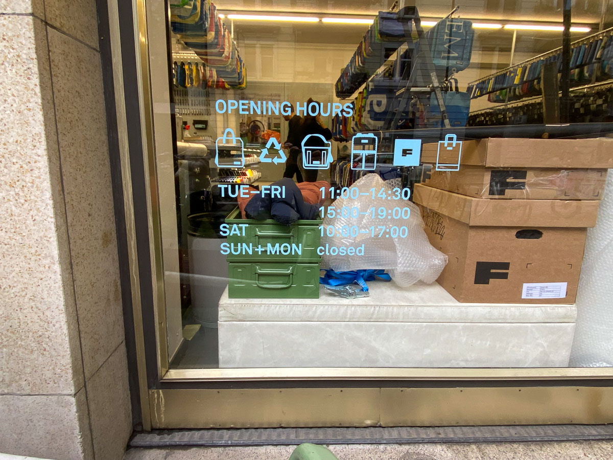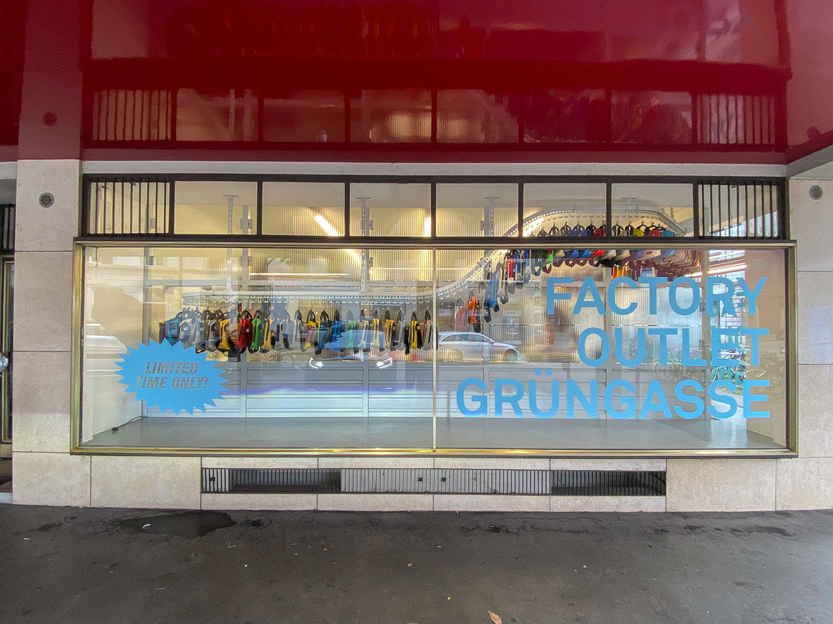 Pop-up-Stores sind ein starkes Format im urbanen Zürich – temporär, aufmerksamkeitsstark und perfekt geeignet für Marken, die flexibel bleiben möchten. Für ein ikonisches Zürcher Label, das für seine charakteristischen Produkte aus wiederverwendeten Materialien bekannt ist, durften wir eine elegante und präzise Schaufensterbeschriftung realisieren. Die grosse Herausforderung war nicht der Zeitpunkt der Montage, sondern die Anforderungen an die Folie: Obwohl die Umsetzung nicht im Winter stattfand, musste das Material über die gesamte kalte Saison hinweg zuverlässig haften und sich später rückstandslos entfernen lassen. Dafür war die Wahl der richtigen Folie und die sorgfältige Vorbereitung entscheidend.